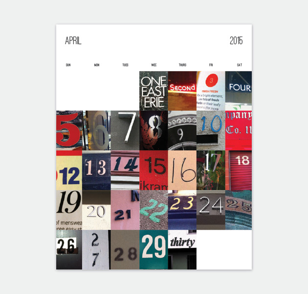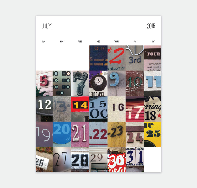 Calendar design featuring 365 unique photos representing each day. Photos were collected over the course of one year from various locations across the country.