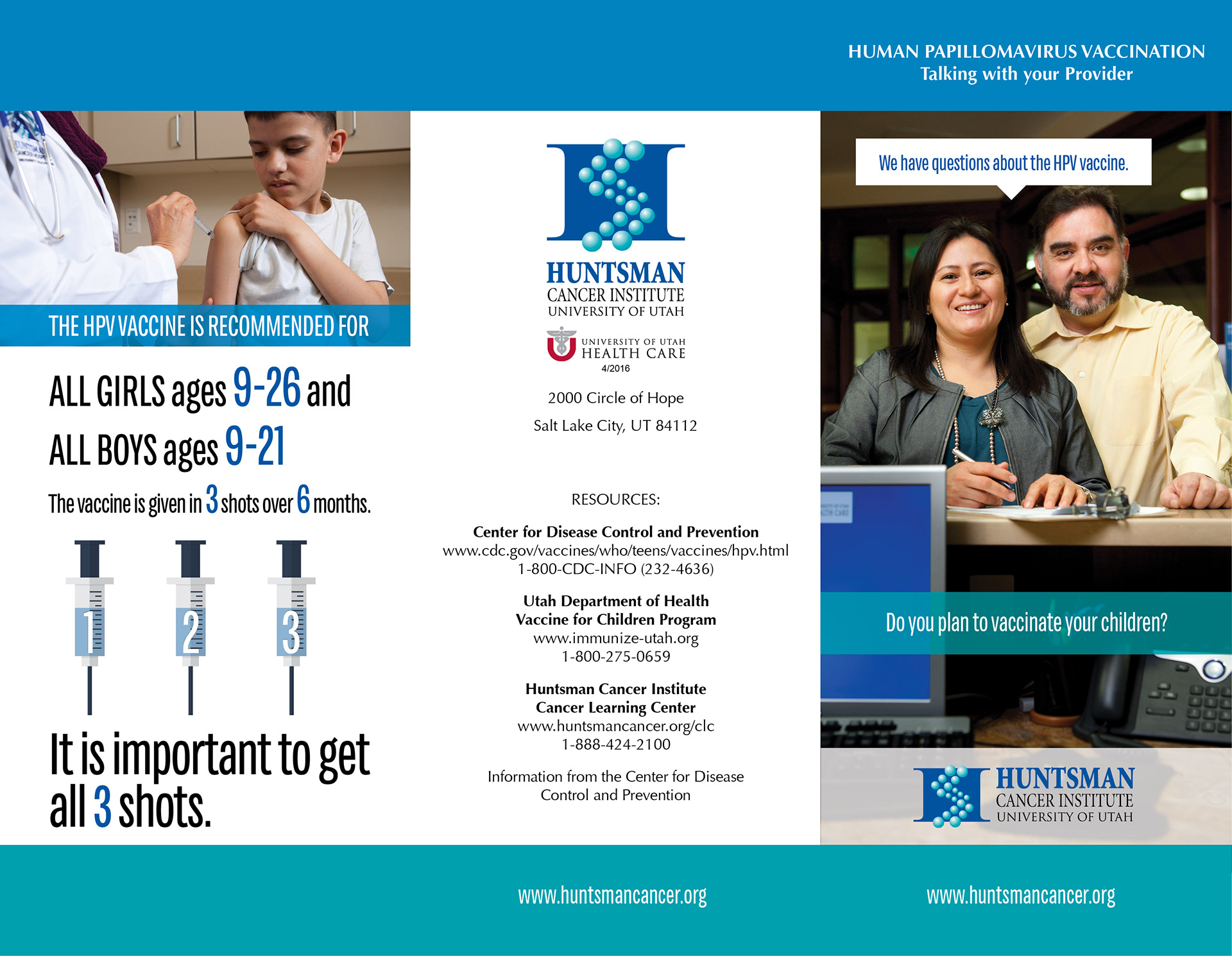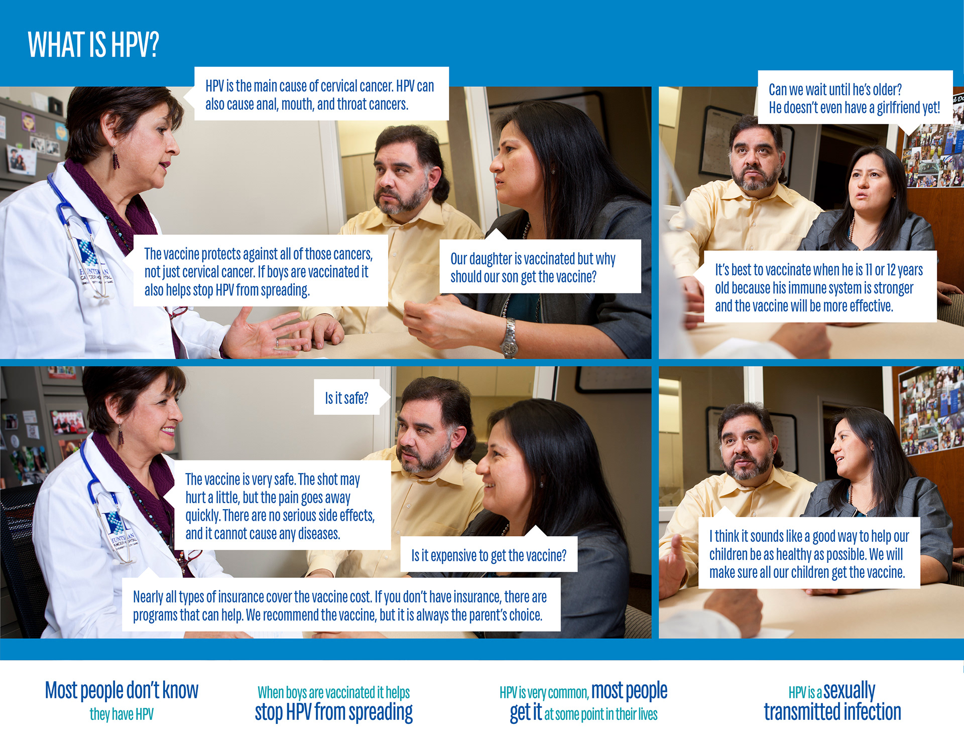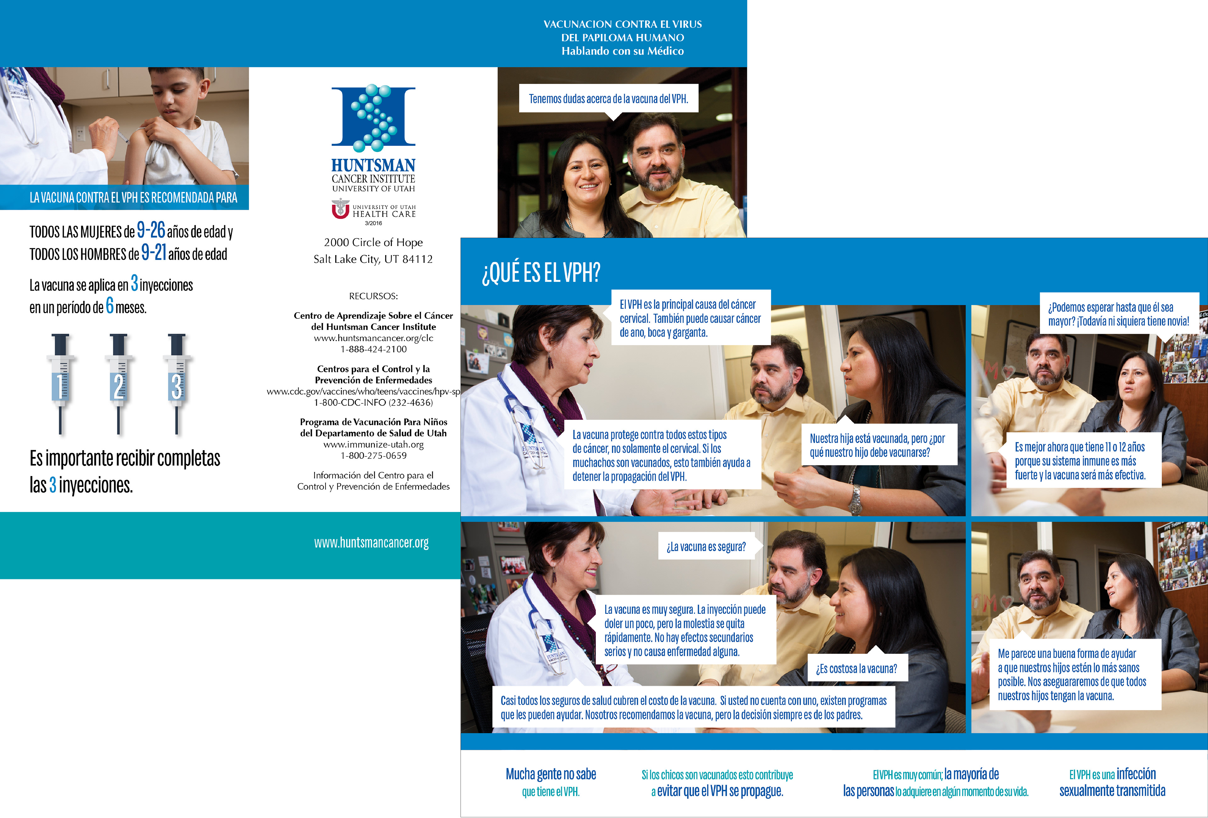 Brochure targeted to the Latino population encouraging the vaccination of young boys and girls against the HPV virus.