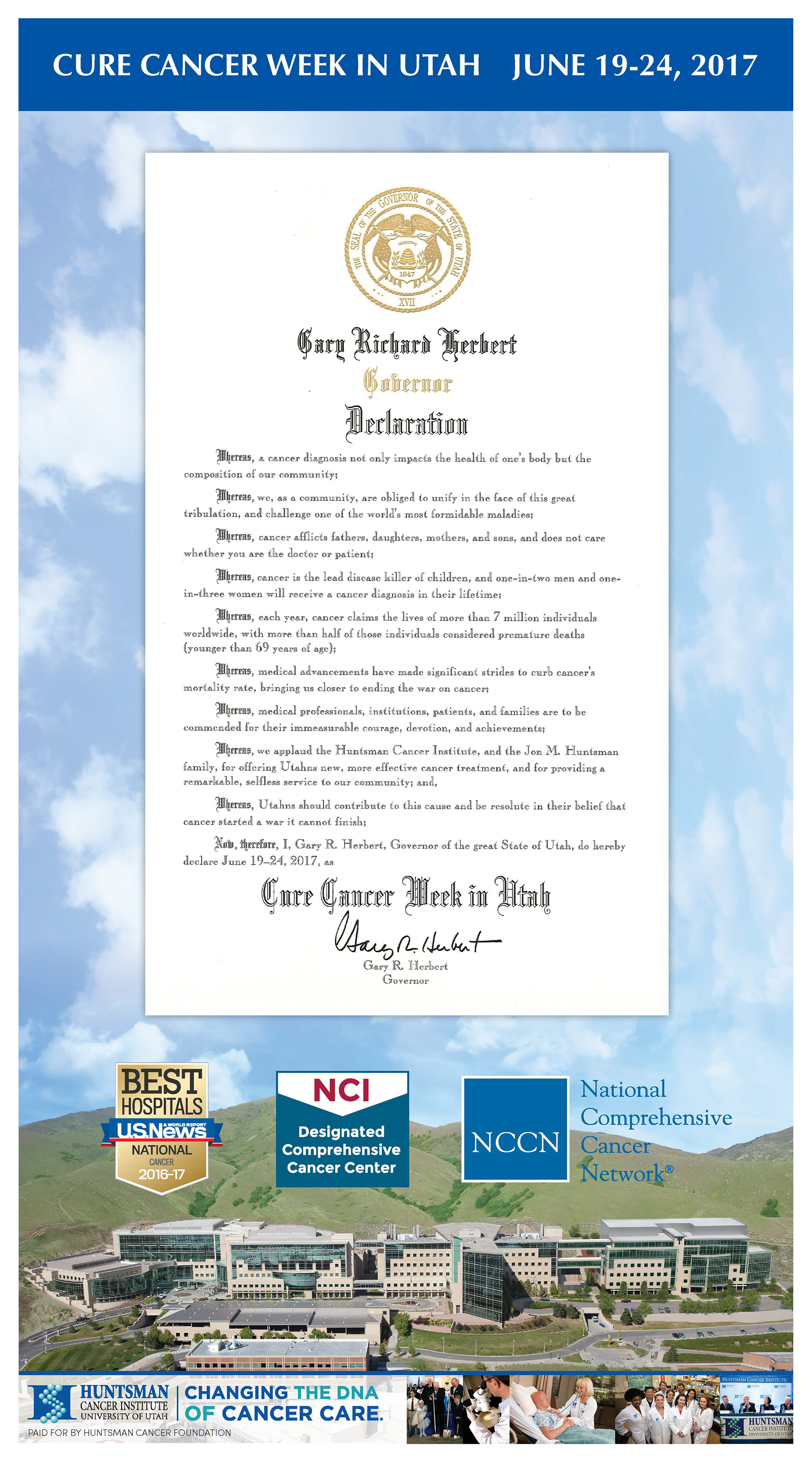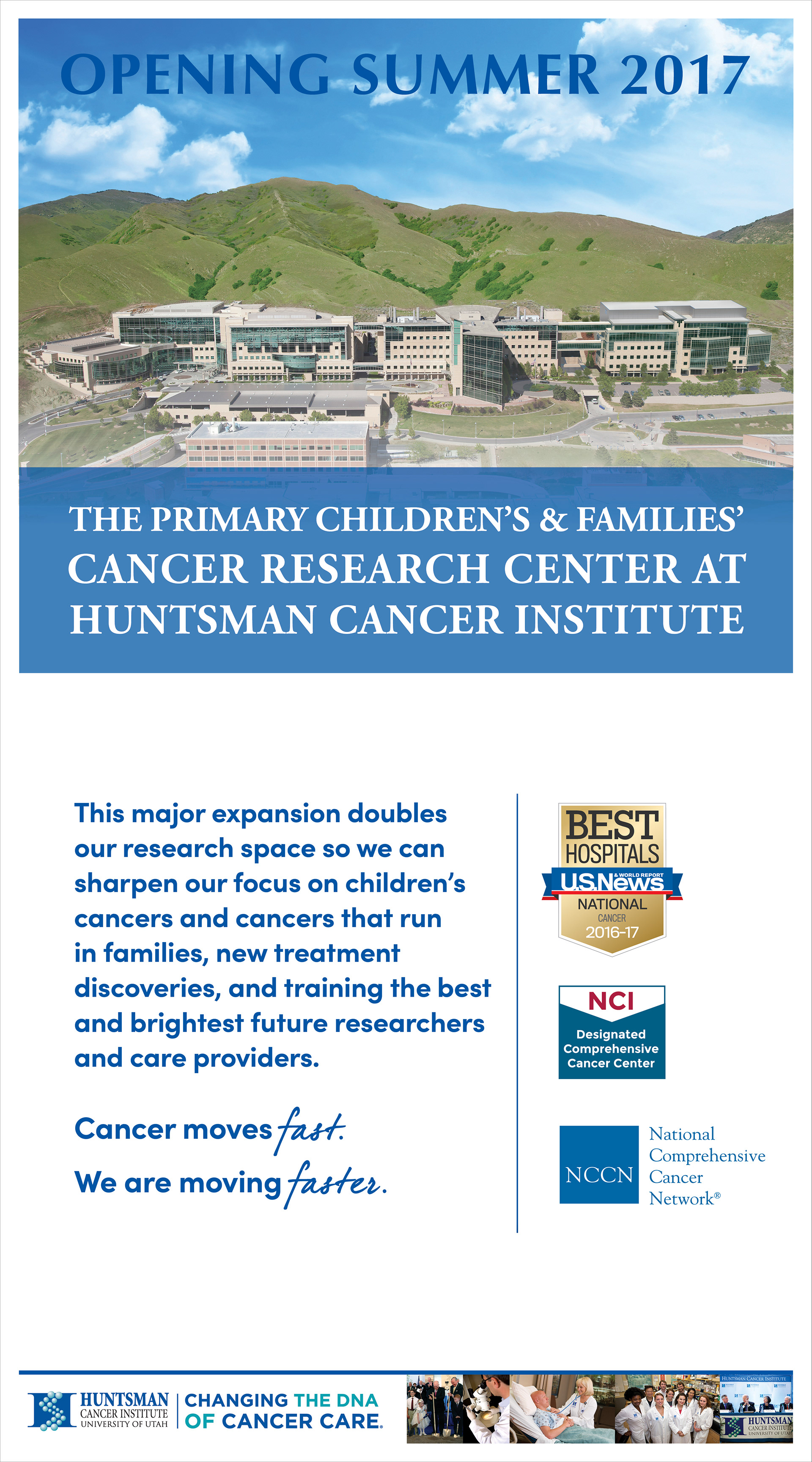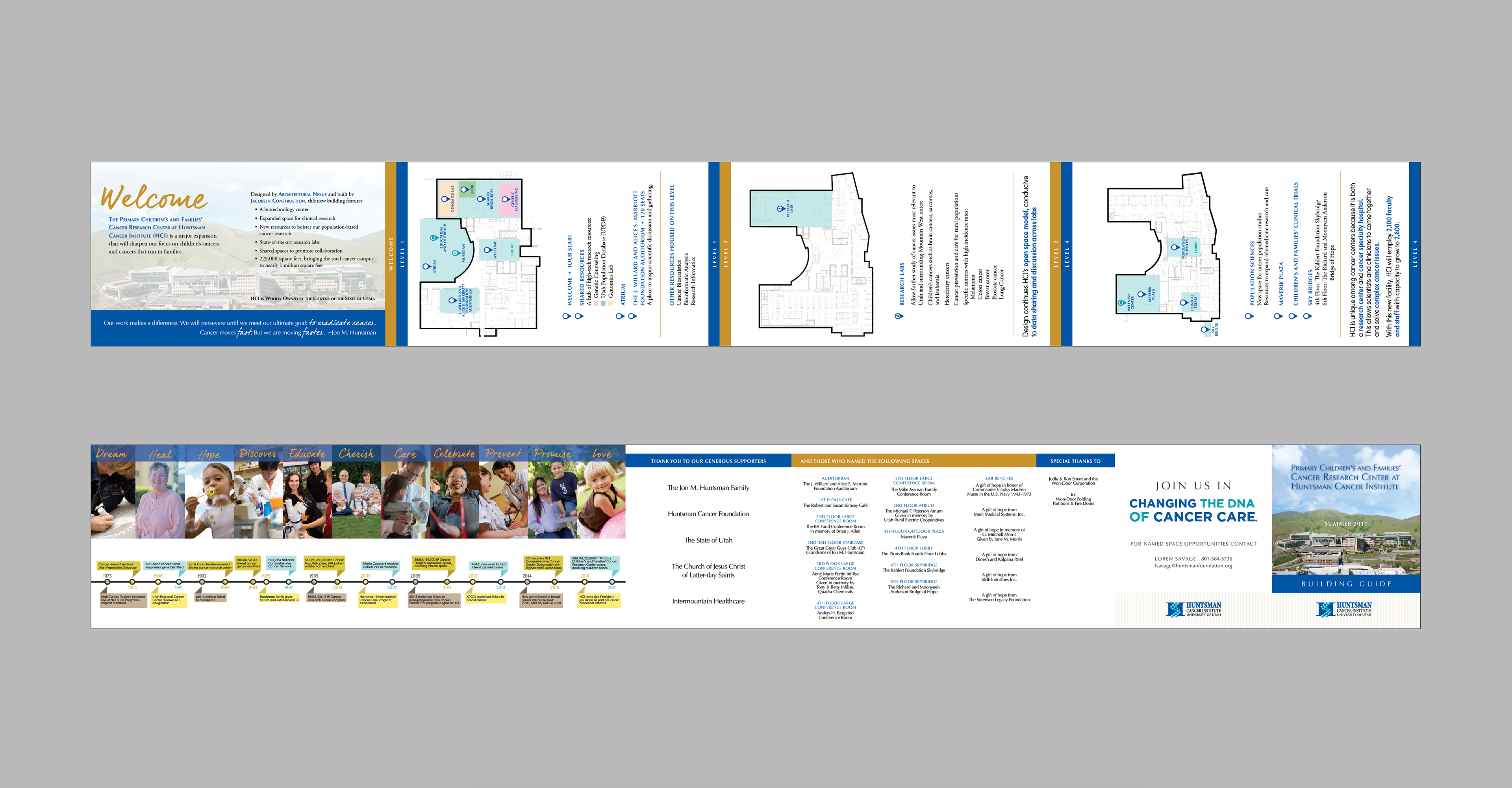 Grand opening ceremony and building tour materials for the major research expansion of Huntsman Cancer Institute (HCI).